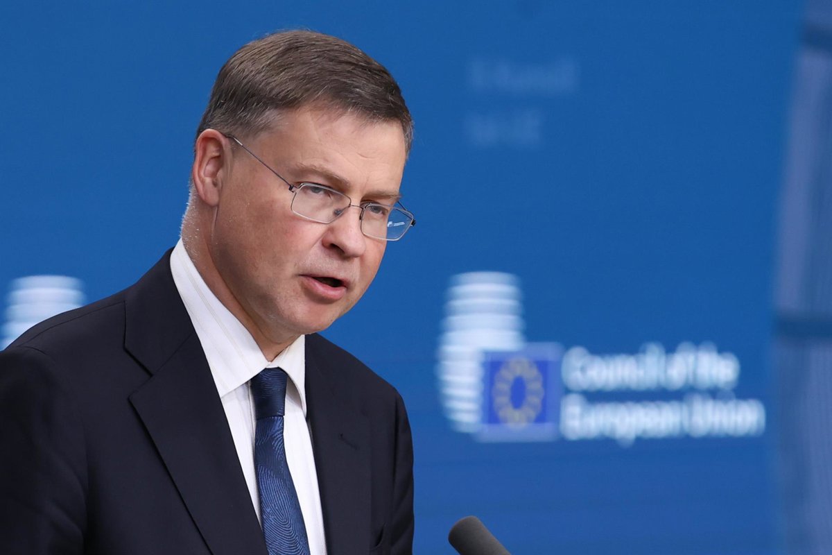 Archivo - HANDOUT - 08 July 2025, Belarus, Brussels: Valdis Dombrovskis, European Commissioner for Economy and Productivity; Implementation and Simplification, speaks during a joint press conference on the joining of Bulgaria to the EURO area. Bulgaria to - Alexandros Michailidis/EU Counci / DPA - Archivo