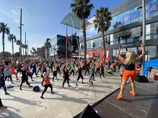 La acción, organizada por la asociación de eventos deportivos E-Noiss, tuvo lugar el pasado domingo 14 de noviembre donde los reconocidos profesores Jessica Expósito y Jon Martín, que cuentan con millones de seguidores en todo el mundo, organizaron una magistral clase de zumba multitudinaria durante más de dos horas.