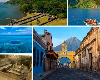 En esta ciudad guatemalteca, fundada el 10 de marzo de 1543, el tiempo se detuvo y quedó atrapado entre las gruesas paredes de sustemplos, monasterios y casas coloniales.Declarada Patrimonio Cultural de la Humanidad en 1979,La Antiguaaún conserva edificaciones restauradas del siglo XVI y puede ser recorrida a pie a través de sus calles empedradas. No hay que perderse el Palacio de los Capitanes Generales, el Convento y Arco de Santa Catalina, la Plaza Mayor, el Museo de Jade o la Antigua Catedral de Guatemala. La ciudad también esrica en artesaníastales como tejidos típicos, cerámica, productos de plata y oro, así como en la elaboración de dulces tradicionales.