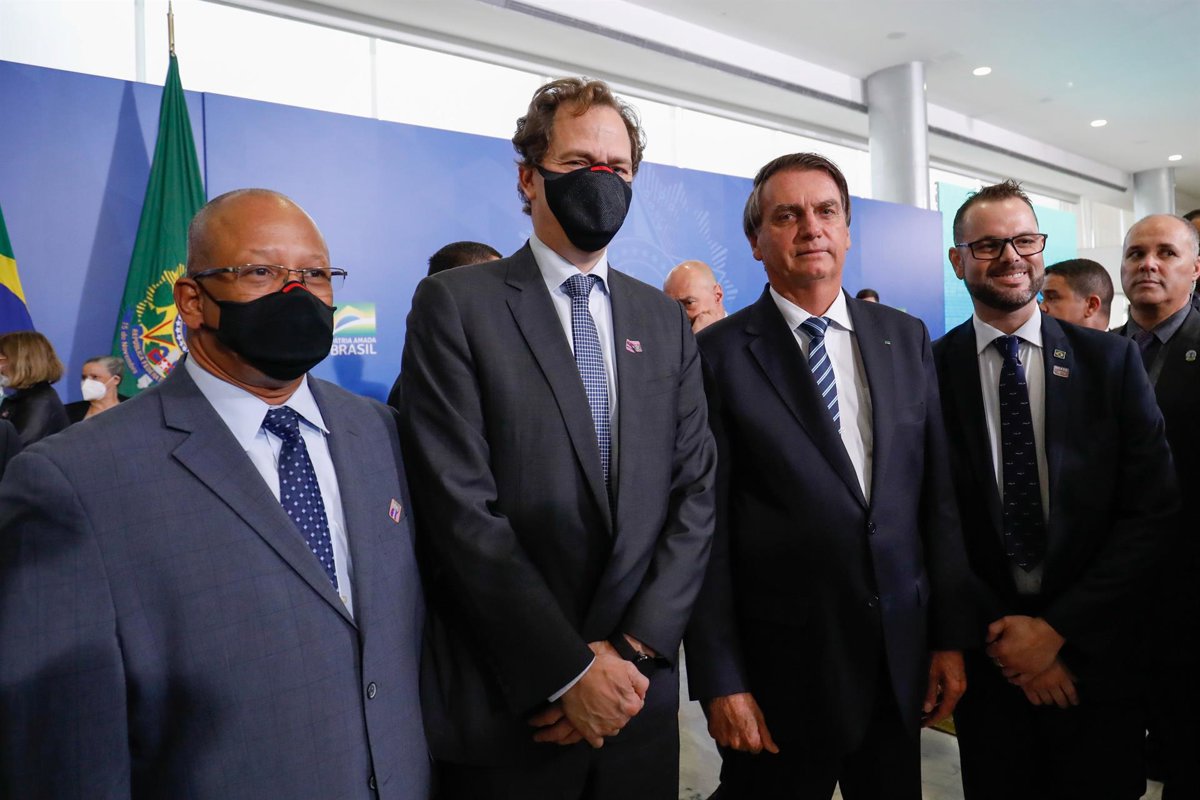 (L-R) Mr. John Lopes, Forever Oceans President, Brazil, Mr. Bill Bien, Forever Oceans CEO, Brazilian President Mr. Jair Bolsonaro, Secretary Of Aquaculture And Fisheries Mr. Jorge Seif Júnior, Attending To An Event At The Palácio Do Planalto, In Brasíli - FOREVER OCEANS/PR NEWSWIRE