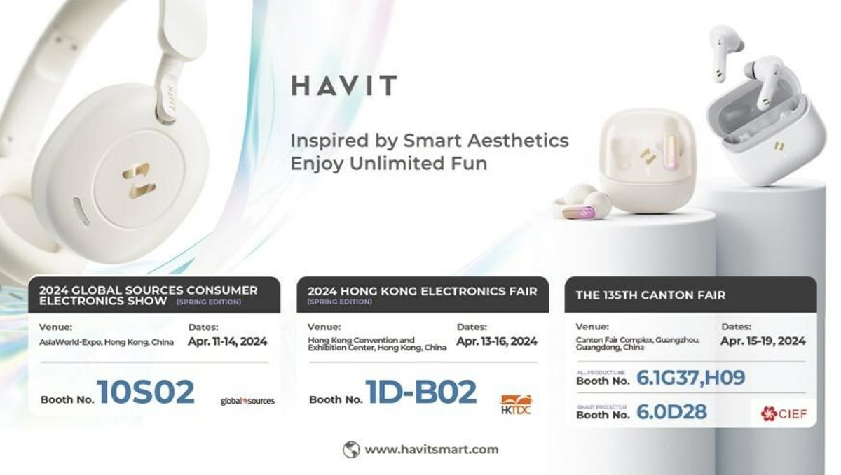 HONG KONG, 8 de abril de 2024 /PRNewswire/ -- En 2024, se llevarán a cabo una serie de ferias comerciales internacionales de electrónica, incluidas Global Sources Consumer Electronics Show, Hong Kong Electronics Fair, la 135 Feria de Cantón, ICTCOMM VIETNAM 2024, COMPUTEX TAIPEI, GITEX Africa 2024 y otras ferias comerciales internacionales. En los últimos años, HAVIT ha presentado continuamente logros innovadores en productos inteligentes, que abarcan líneas de productos como dispositivos de audio, periféricos para juegos, accesorios móviles y productos electrónicos para la vida inteligente. Como marca de consumo de electrónica inteligente, HAVIT exhibirá tres productos innovadores principales en exposiciones internacionales de electrónica, demostrando los últimos logros y la fortaleza tecnológica de HAVIT en tecnología inteligente.