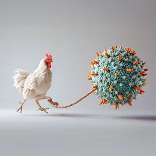 Gallina y virus de la Influenza Aviar - Foto creada con IA
