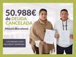 Repara tu Deuda Abogados, despacho de abogados líder en España en la tramitación de la Ley de Segunda Oportunidad, ha logrado otra cancelación de deuda en Catalunya. Mediante la gestión de Repara tu Deuda Abogados, el Juzgado de Primera Instancia n8 de Mataró (Barcelona) ha dictado exoneración del pasivo insatisfecho en el caso de Millgrentt Sampedro y Luis Enrique Loor, que había acumulado una deuda de 50.988 euros a la que no podían hacer frente. VER SENTENCIAS aquí y aquí.