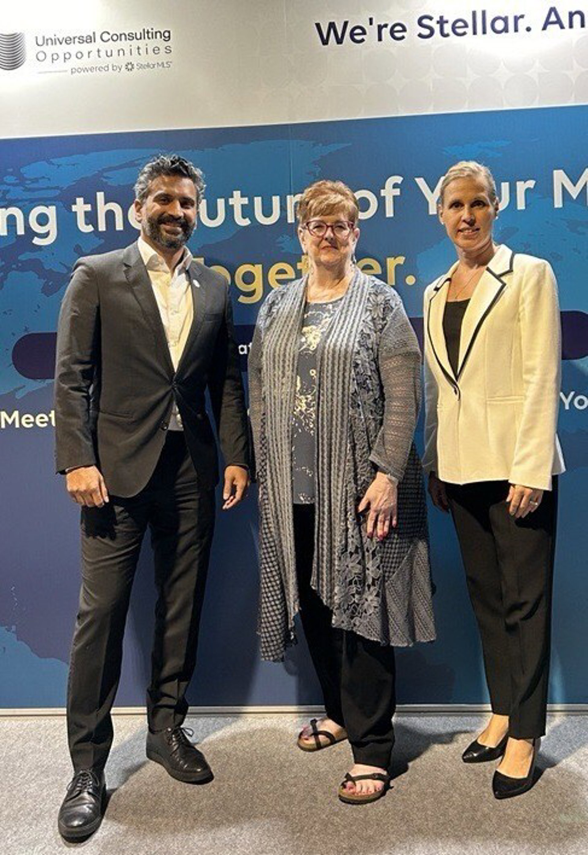 Attending the International MLS Forum in Milan Oct. 7, 2024, were (from left): Dr. Mathew Kallumadil, UCO Vice President of Global Markets and Stellar MLS Vice President of Technology and Innovation; Merri Jo Cowen, CEO of UCO and Stellar MLS: and Marion - STELLAR MLS/PR NEWSWIRE