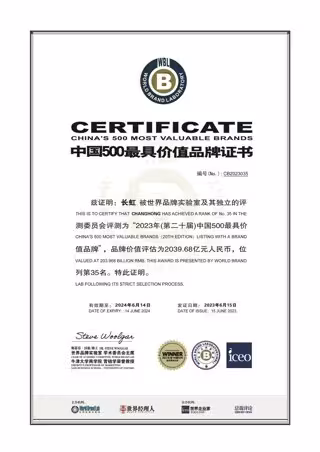MIANYANG, China, 26 de julio de 2023/PRNewswire/ -- Changhong se aseguró un lugar en la lista de 2023 de las 500 marcas más valiosas de China con un valor de marca de 203.968 millones de yuanes, lo que marca un salto significativo en su valoración. La lista se dio a conocer durante la Conferencia Mundial de Marcas 2023 celebrada recientemente por World Brand Lab en Beijing. World Brand Lab, una filial de propiedad total de World Executive Group, es una consultora líder mundial en marketing digital y valoración de marcas.
